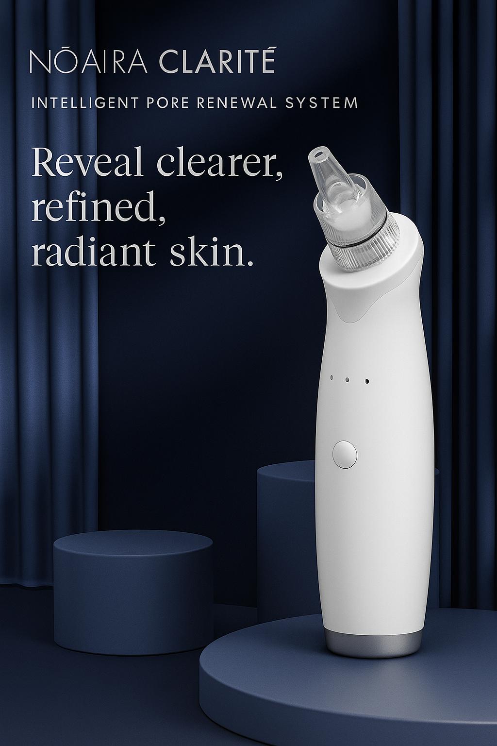 Reveal skin that breathes with clarity. The NŌAIRA Clarité is a precision-engineered facial renewal system, designed to gently but powerfully remove blackheads, purify pores, and refine skin texture. Infused with intelligent suction technology and soothing micro-massage, Clarité goes beyond cleansing to restore balance, radiance, and refinement to the complexion.